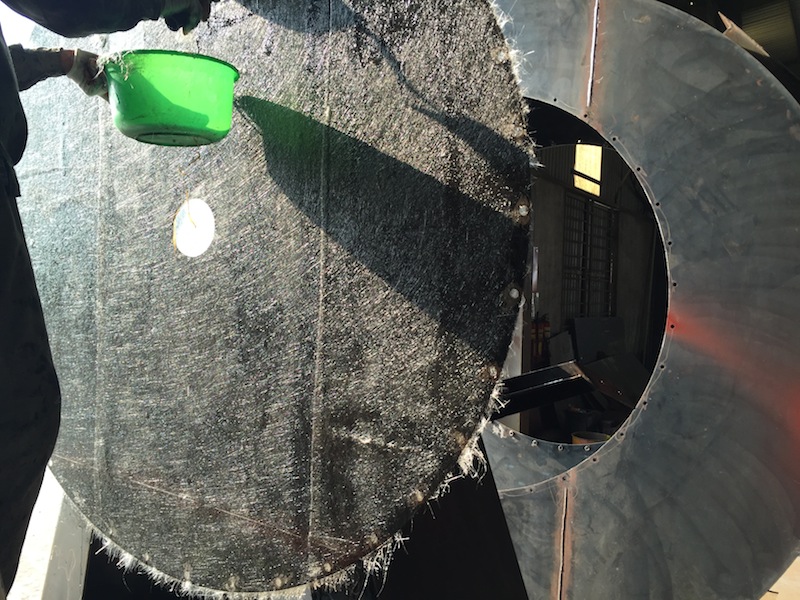 Bọc Composite FRP mặt trong Quạt công nghiệp - Quạt Sên để tăng độ bền , kháng ăn mòn của hơi hoá chất.
